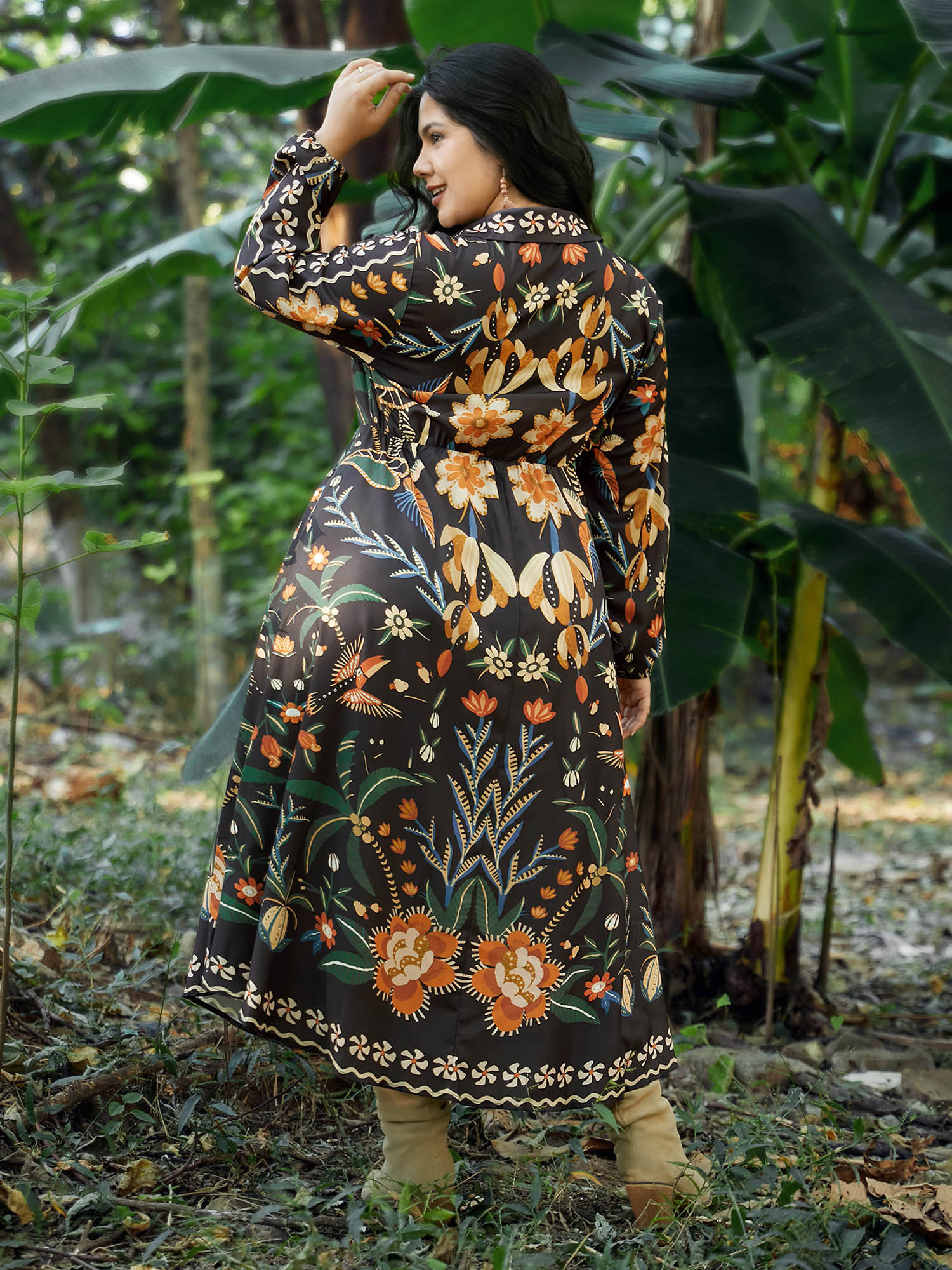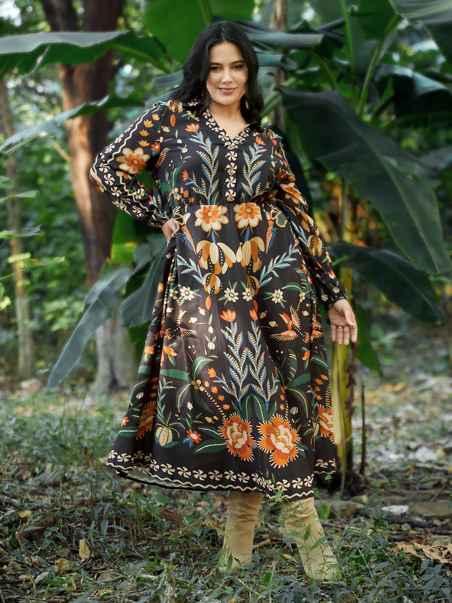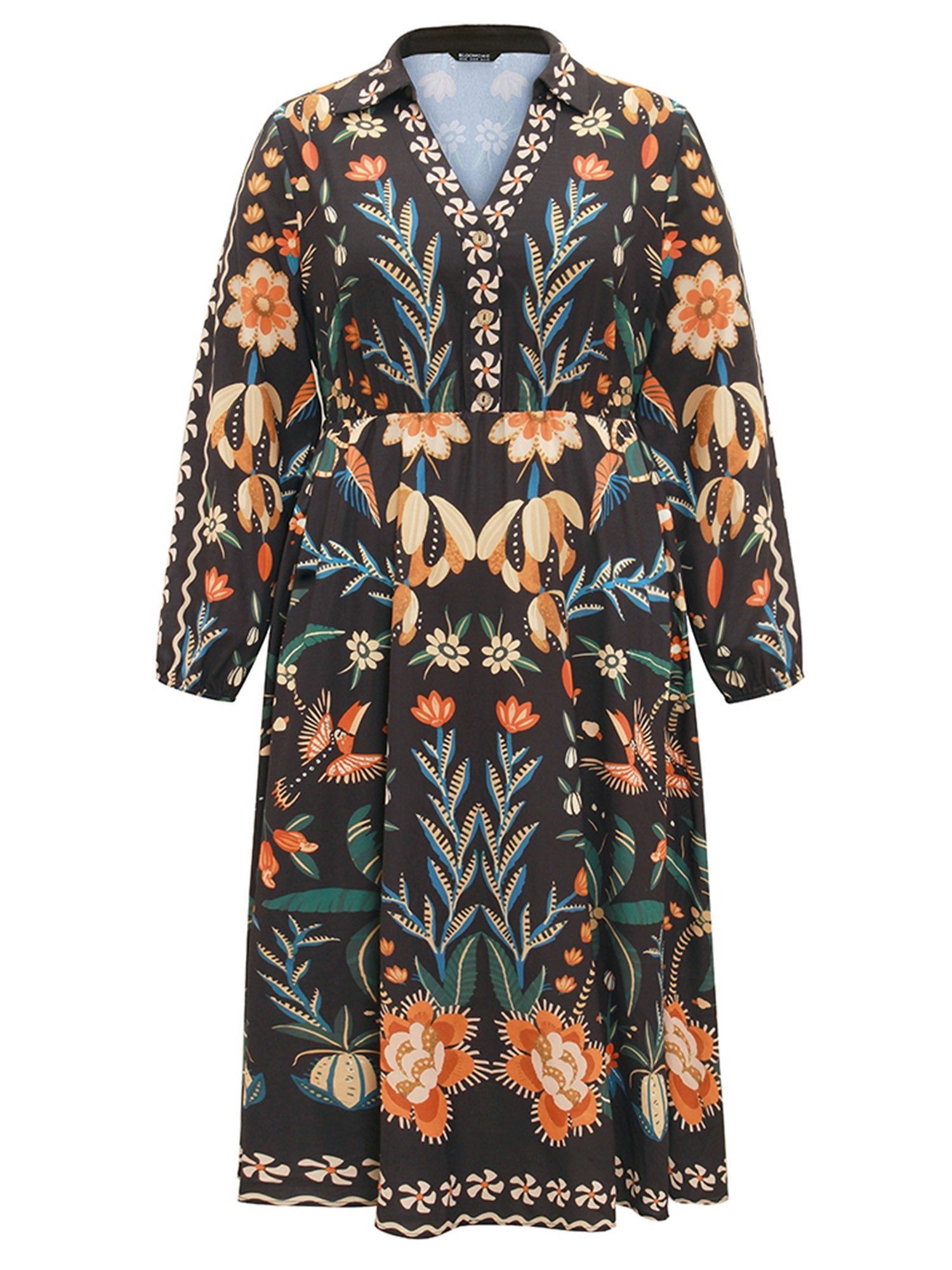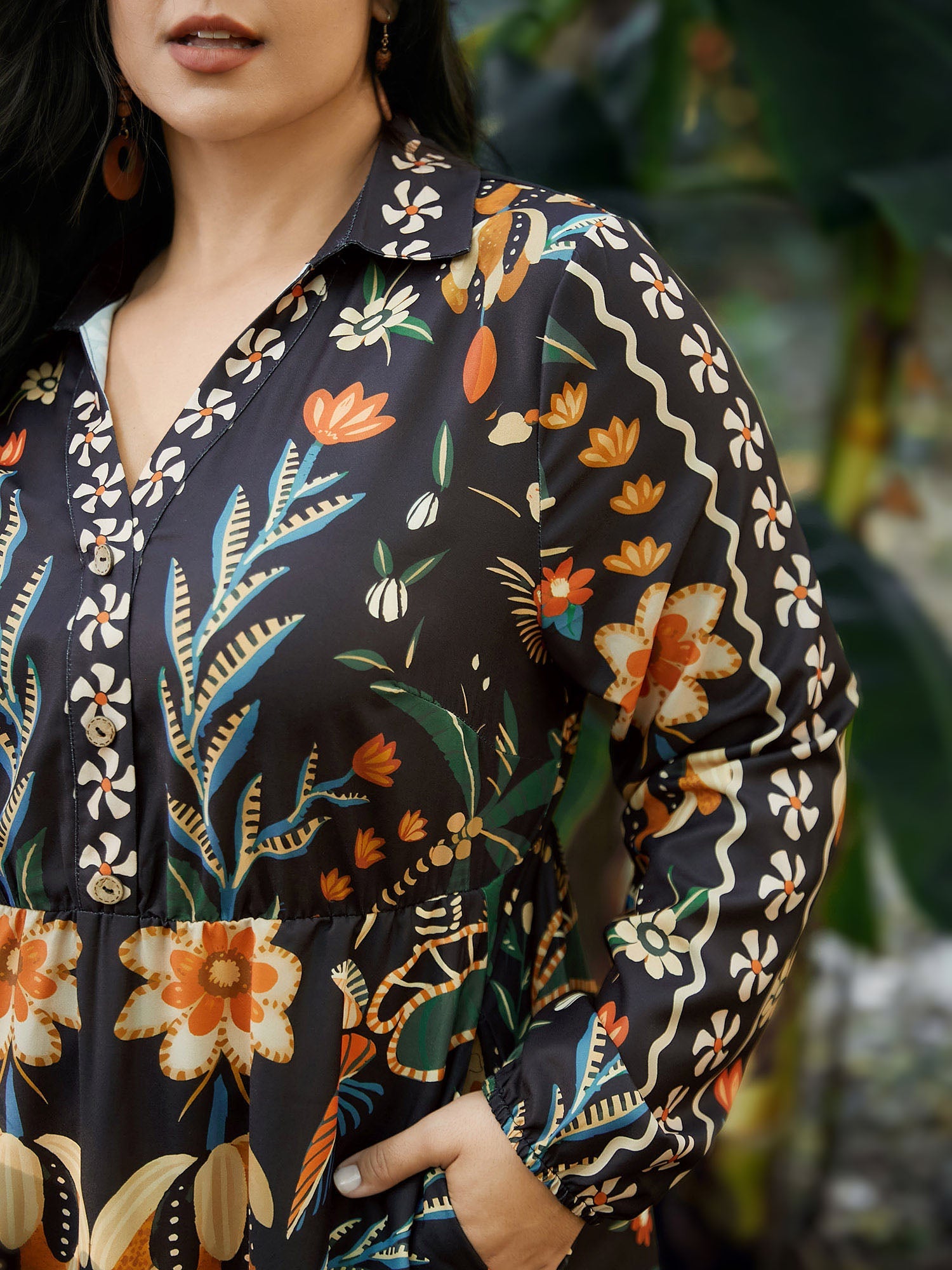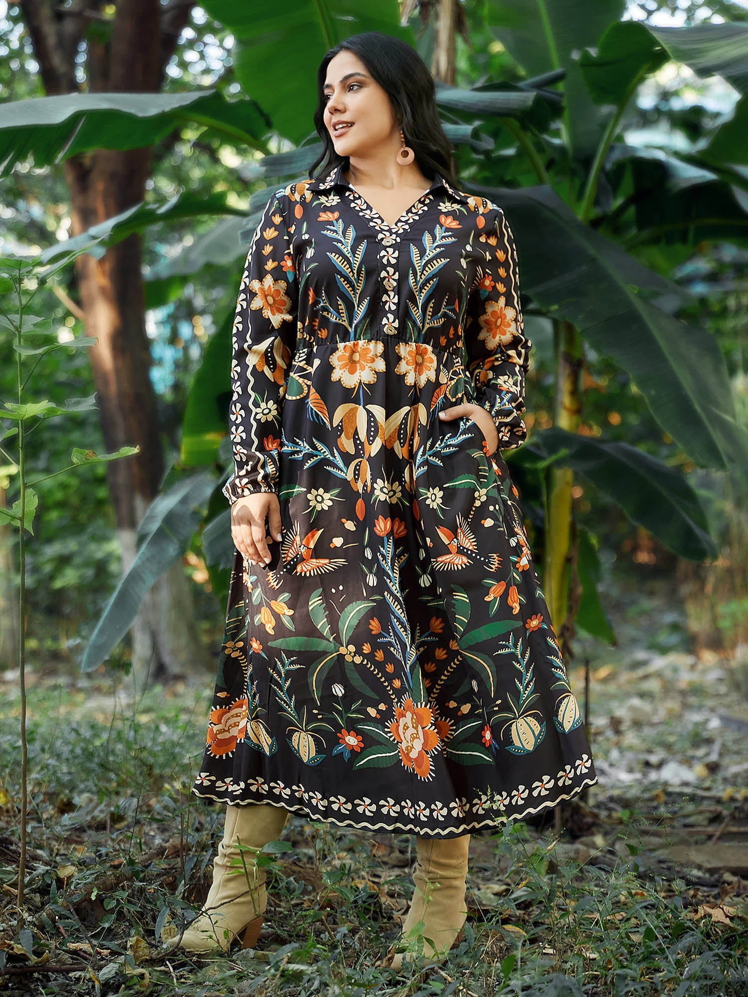 Bandana Print Pocket Lapel Collar Elastic Cuffs Dress