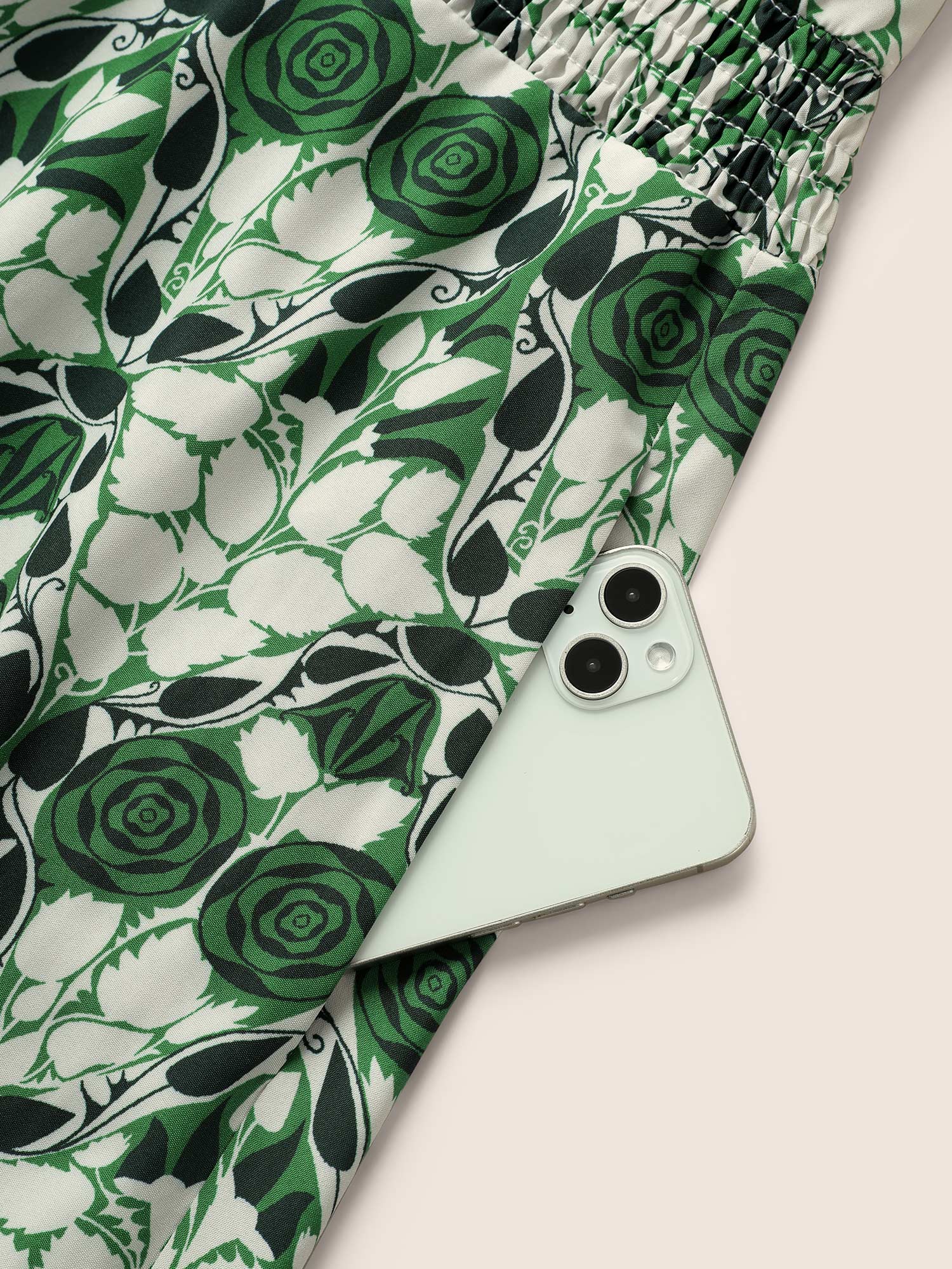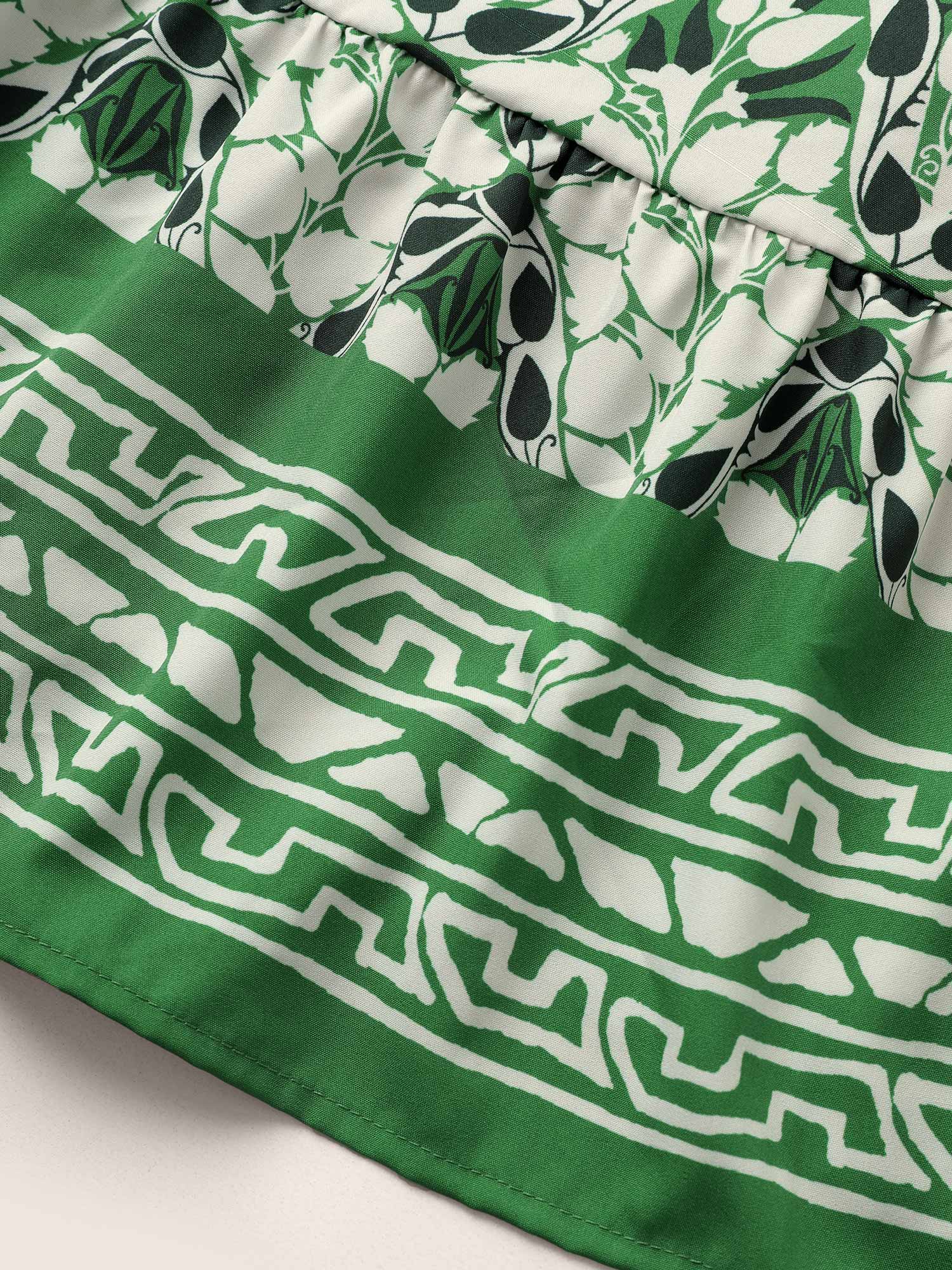 Boho Print Ruffles Shirred Pocket Elastic Waist Dress