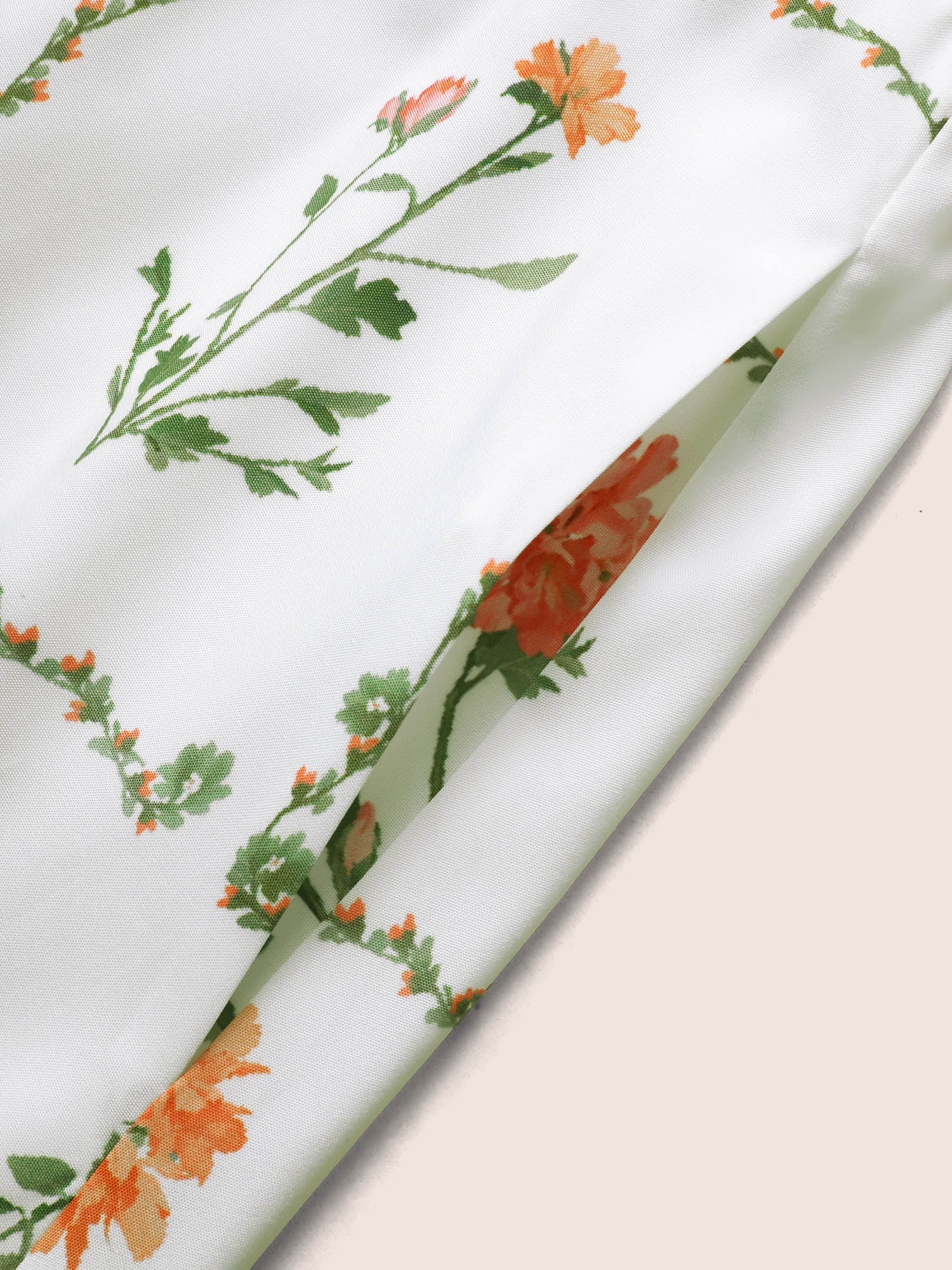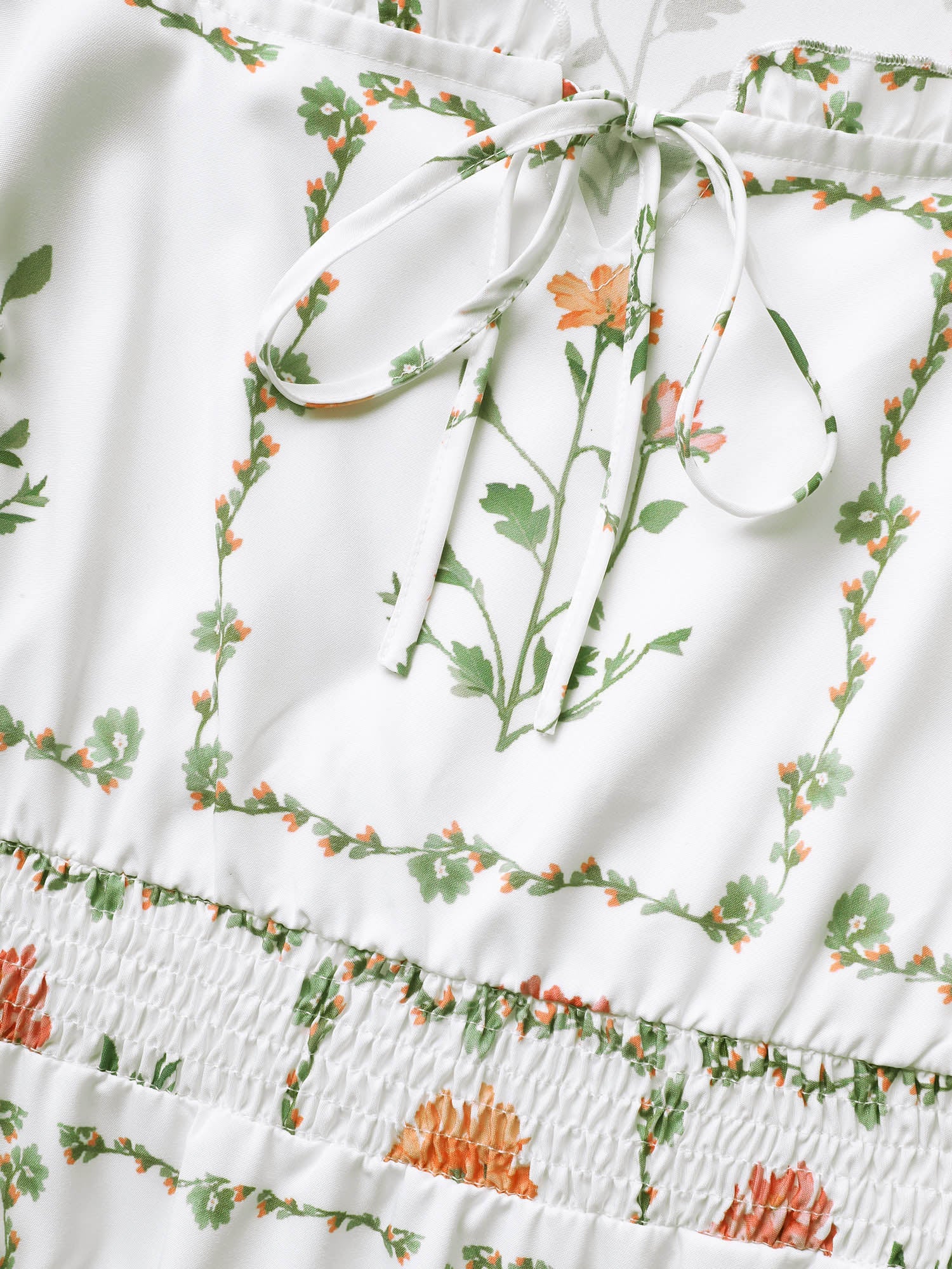 Boho Print Tie Knot Shirred Lantern Sleeve Dress