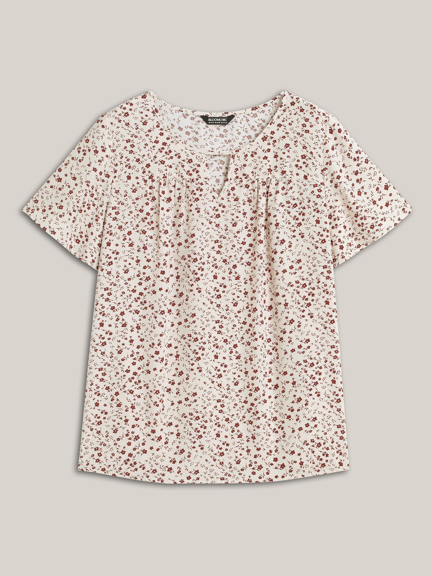 Ditsy Floral Print Lotus Leaf Sleeve Shirt