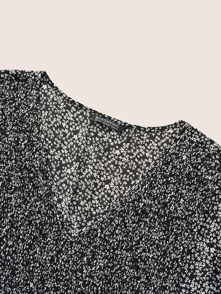 Ditsy Floral Shirred Ruffle Sleeve Elastic Waist Blouse