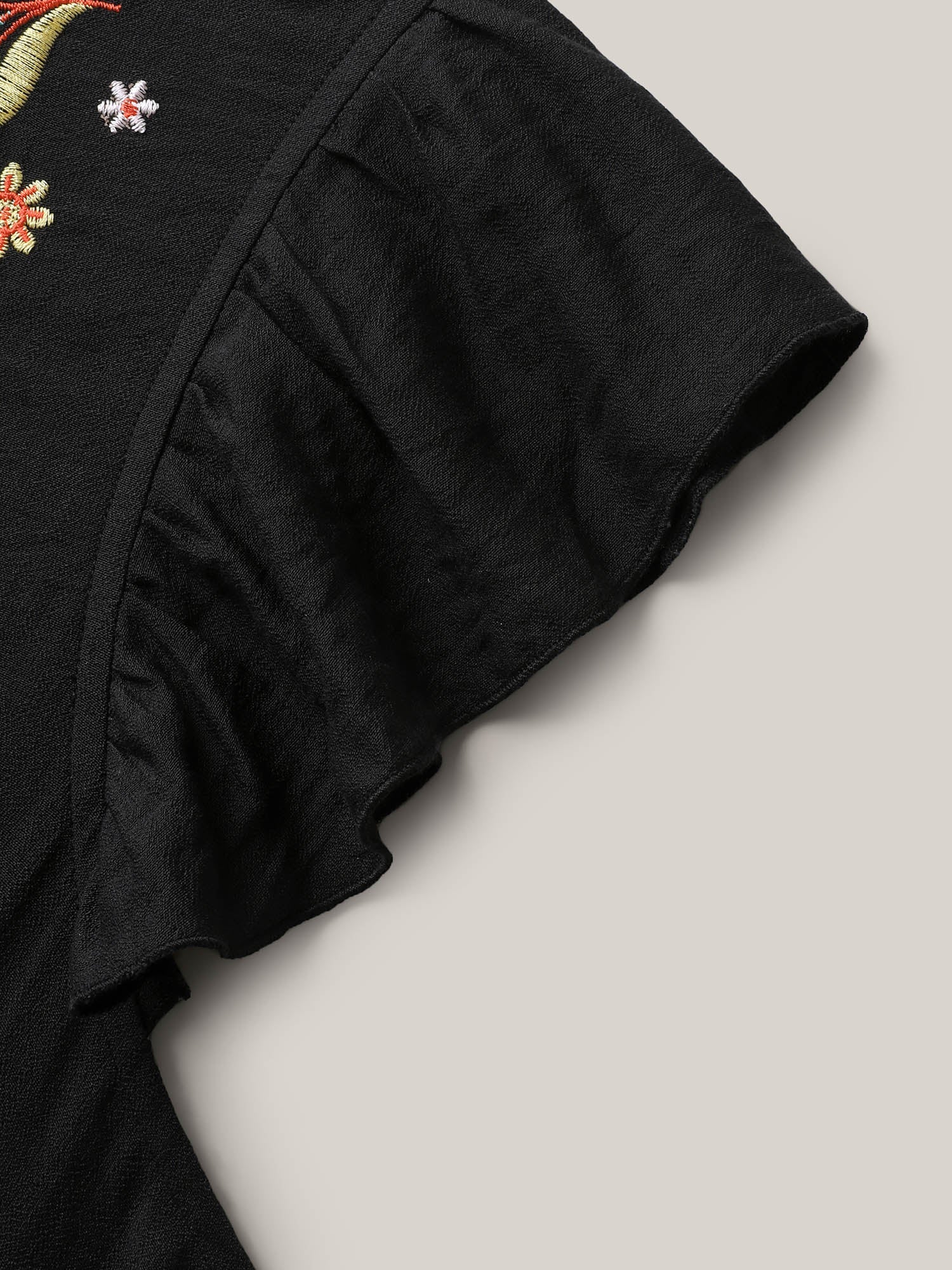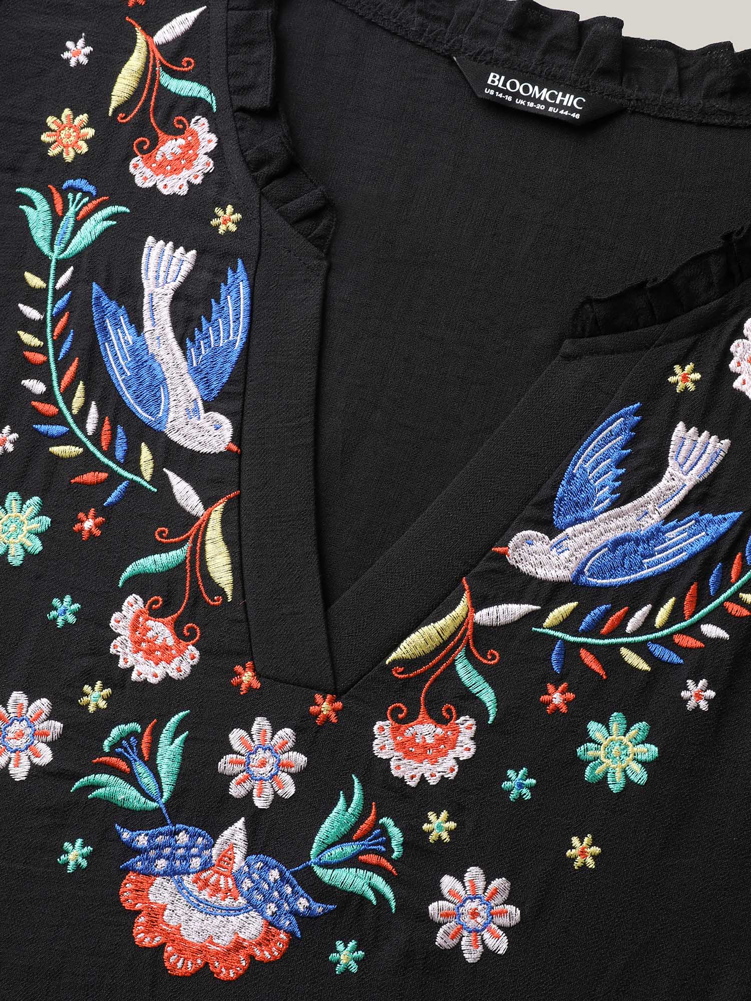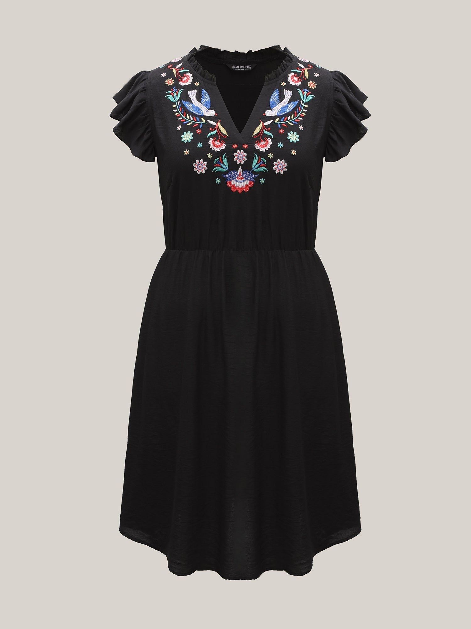 Floral Embroidered Notched Collar Midi Dress