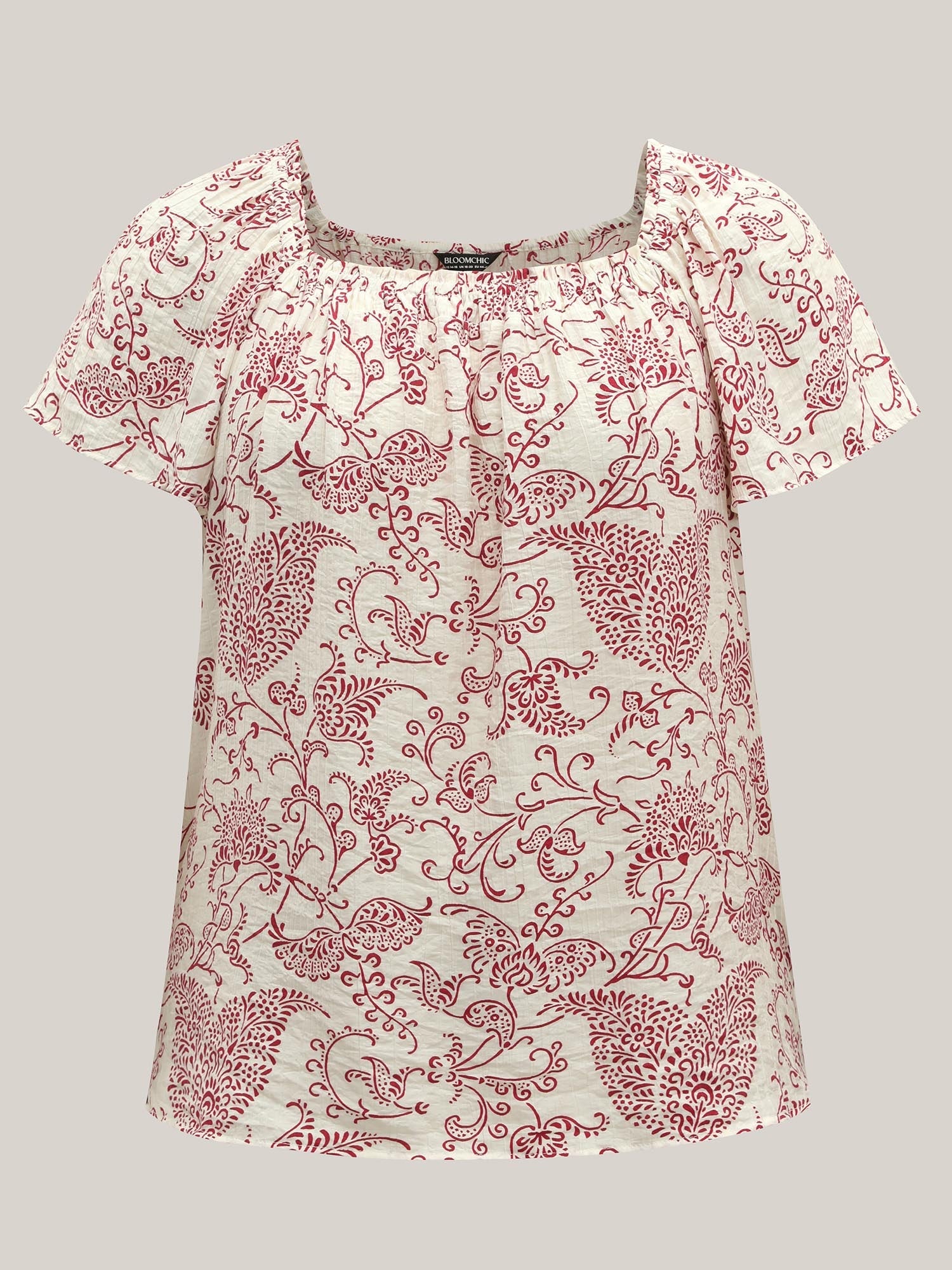 Floral Print Shirred Neck Flowy Blouse