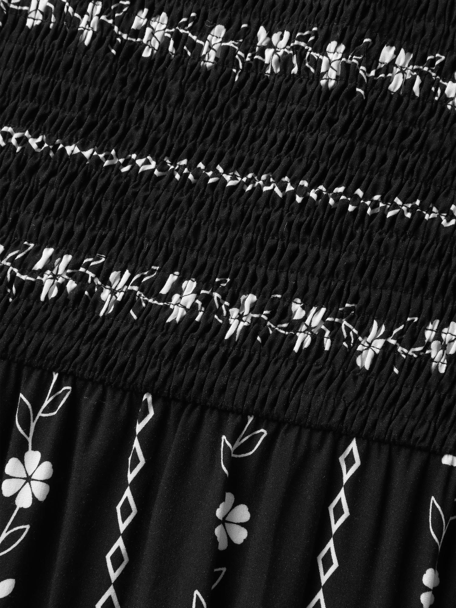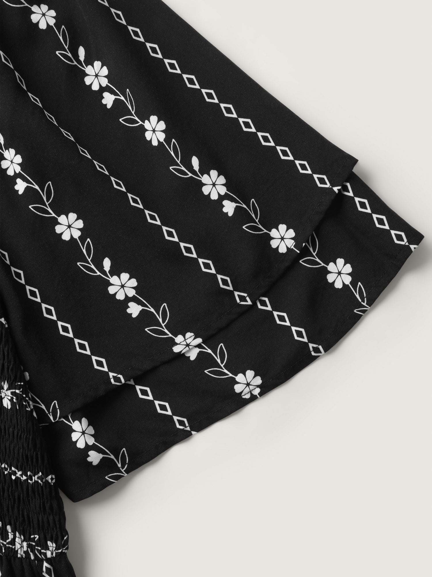 Floral Stripes Layered Ruffle Sleeve Midi Dress