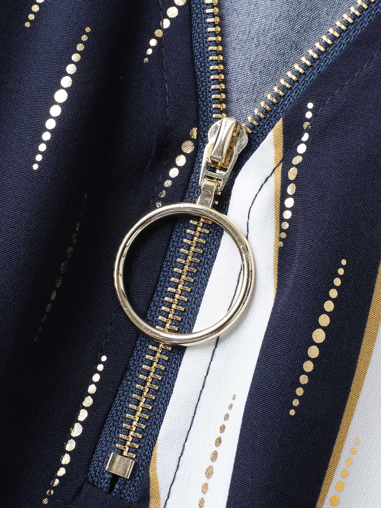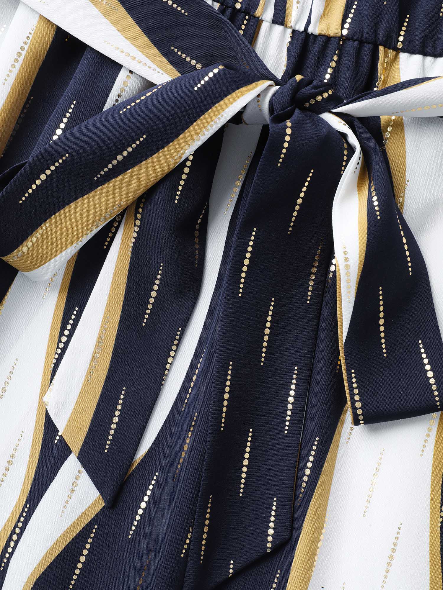 Gold Stamp Wavy Striped Lined Midi Dress