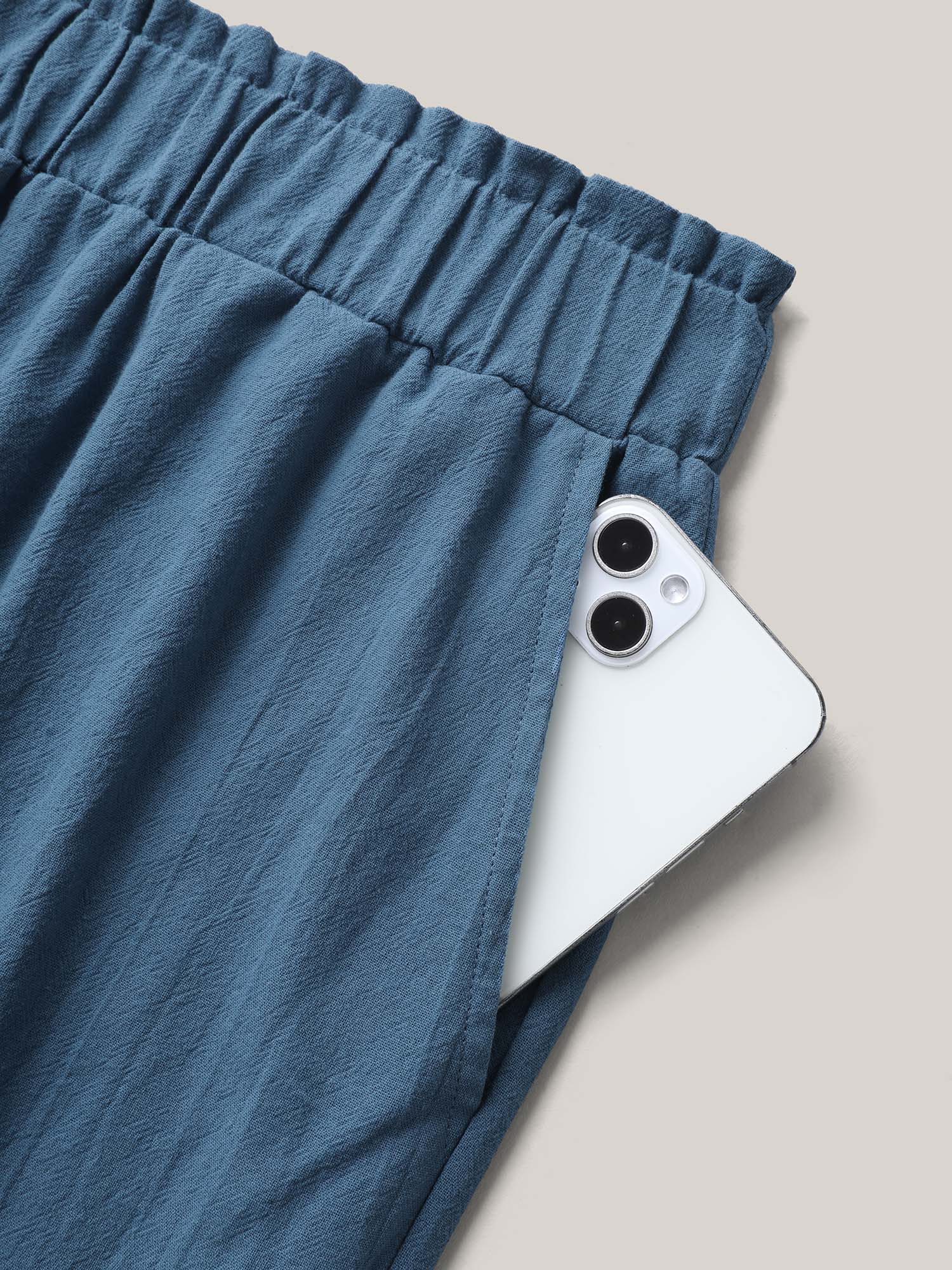 Cotton Waist-Tie Lace Wide-Leg Pants