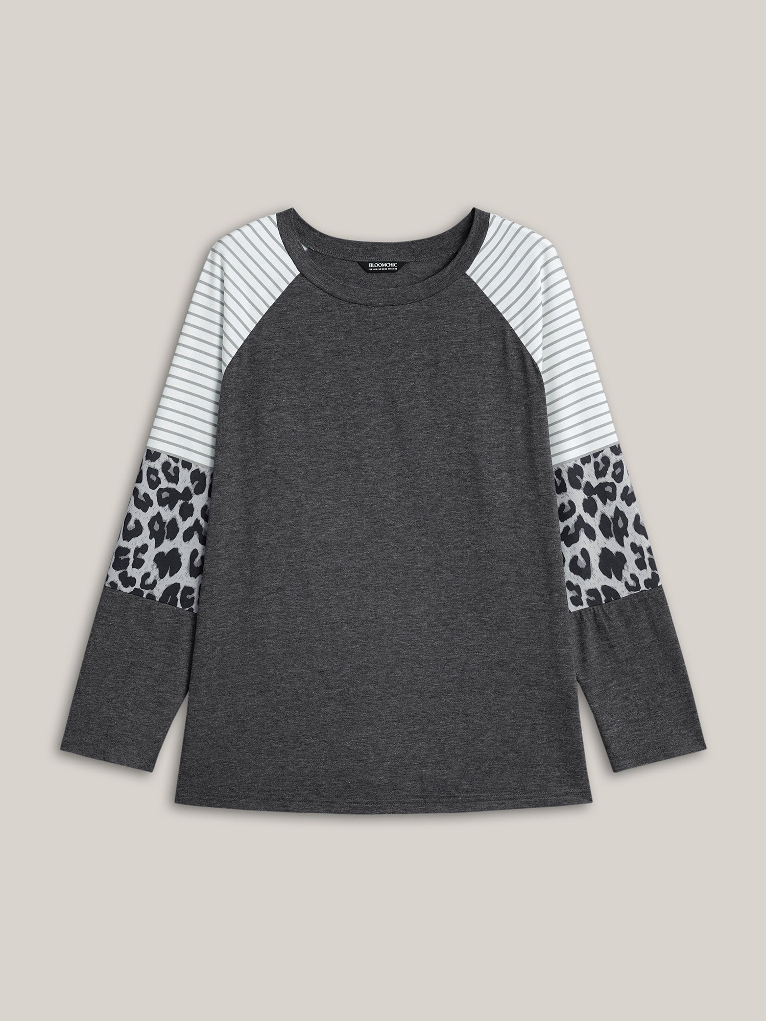 Mixed Leopard Print Raglan Sleeve T-Shirt