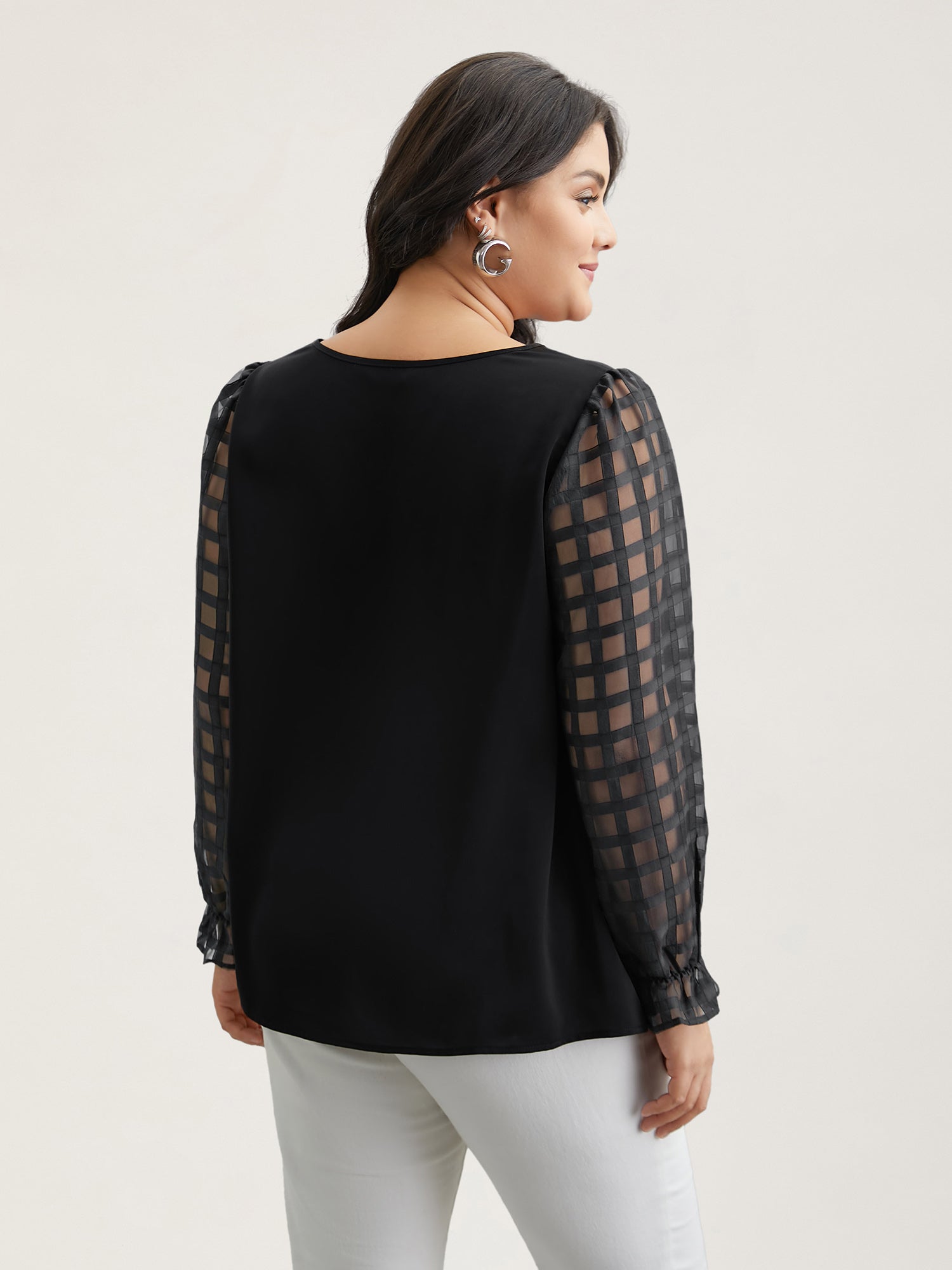 Sheer Textured Sleeve Neck Cut-Out Shirt
