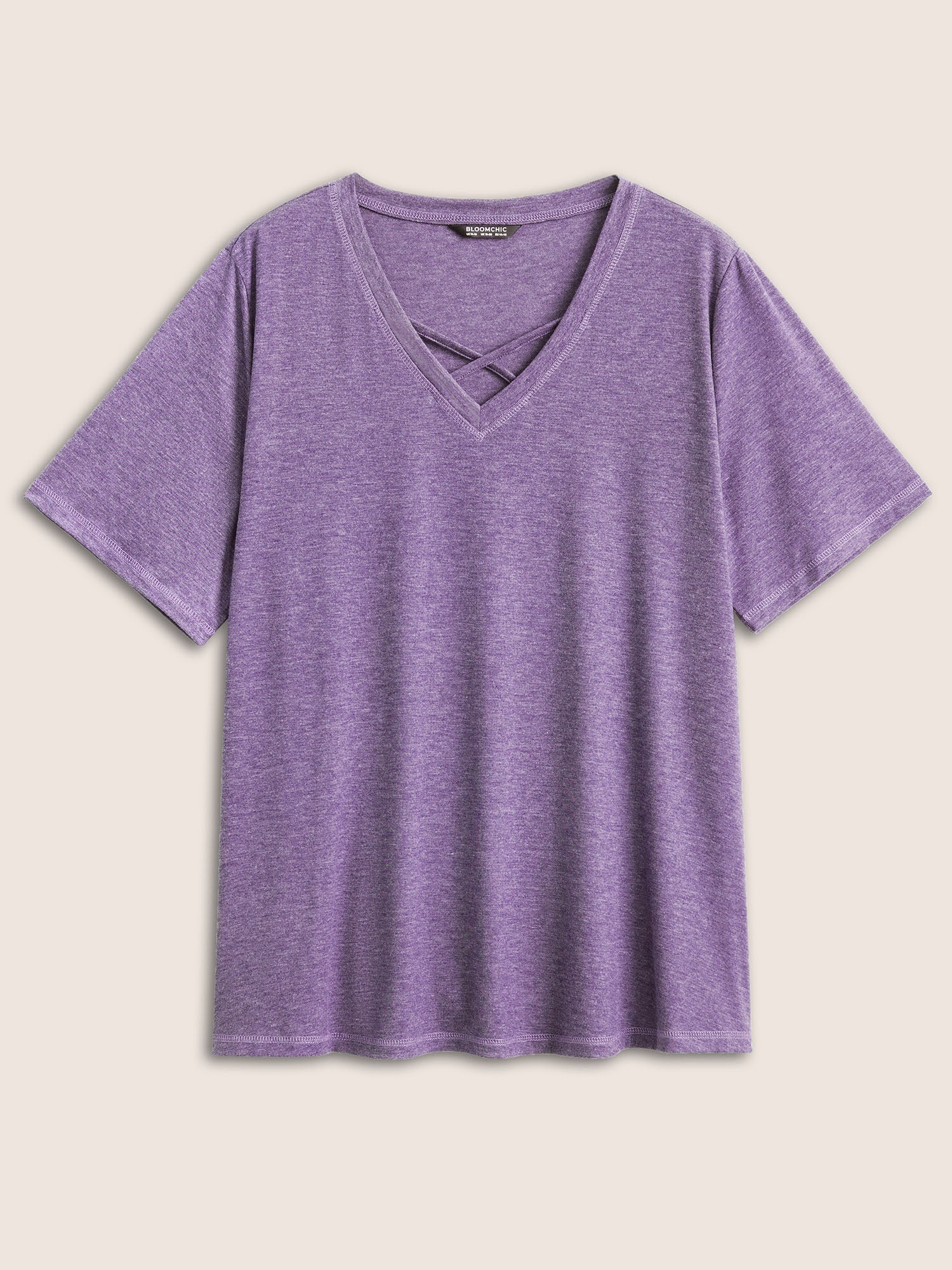 Solid Crisscross Neck Contrast Stitch T-shirt