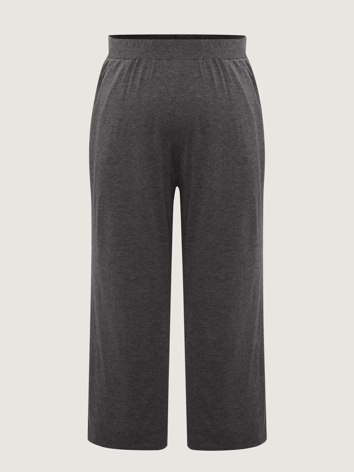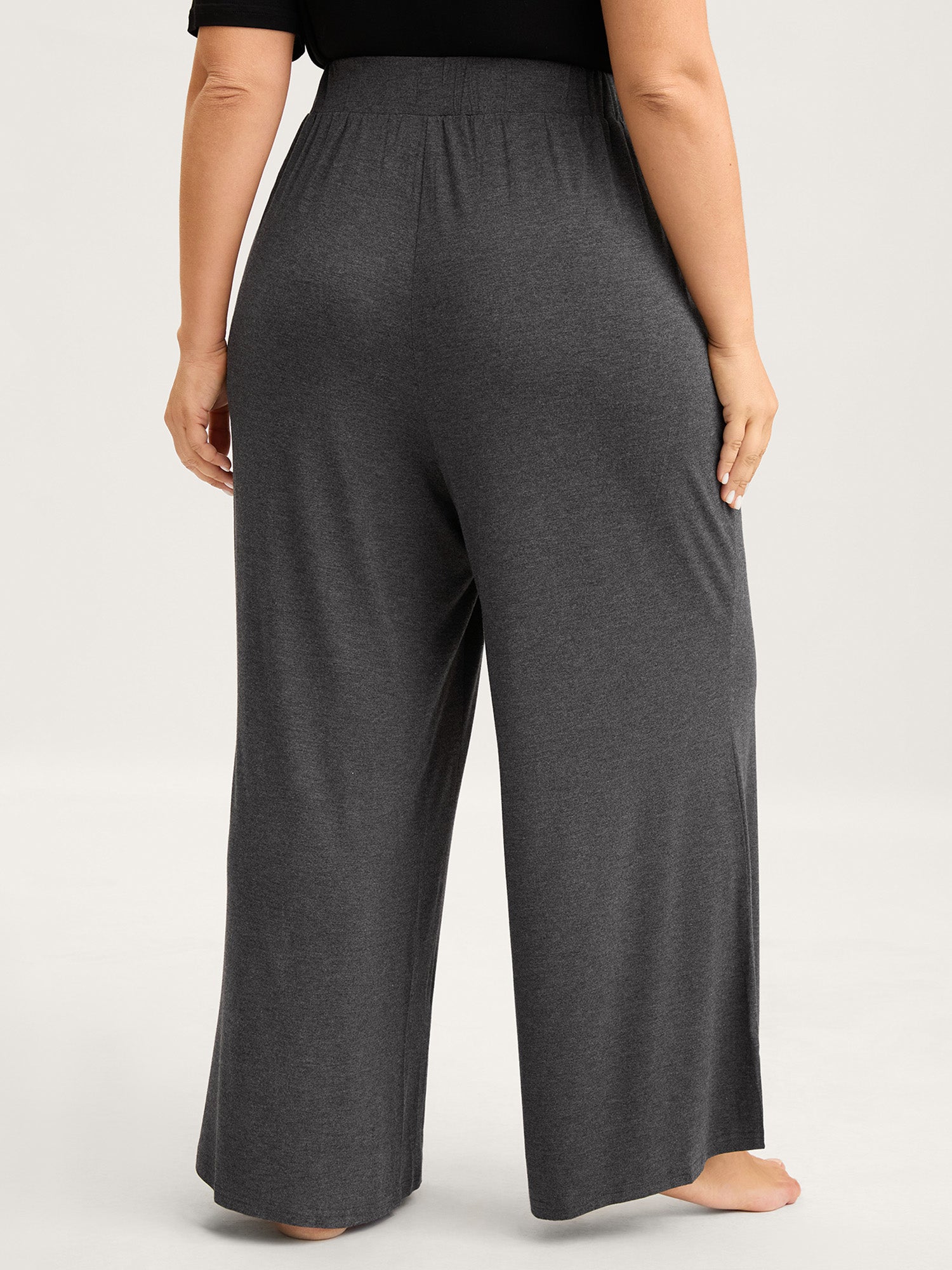 Solid Elastic Waist Wide Leg Lounge Bottoms