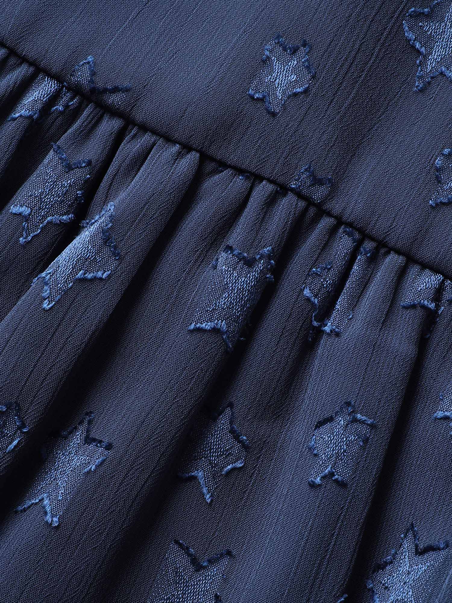 Star Mesh Gathered Ruffle Sleeve Blouse