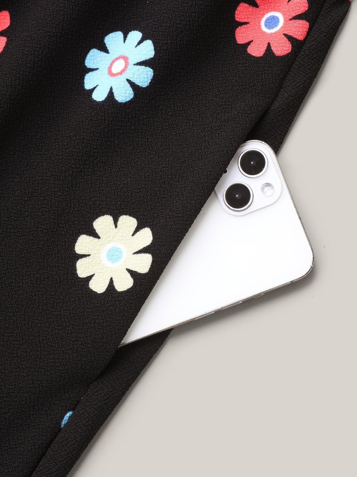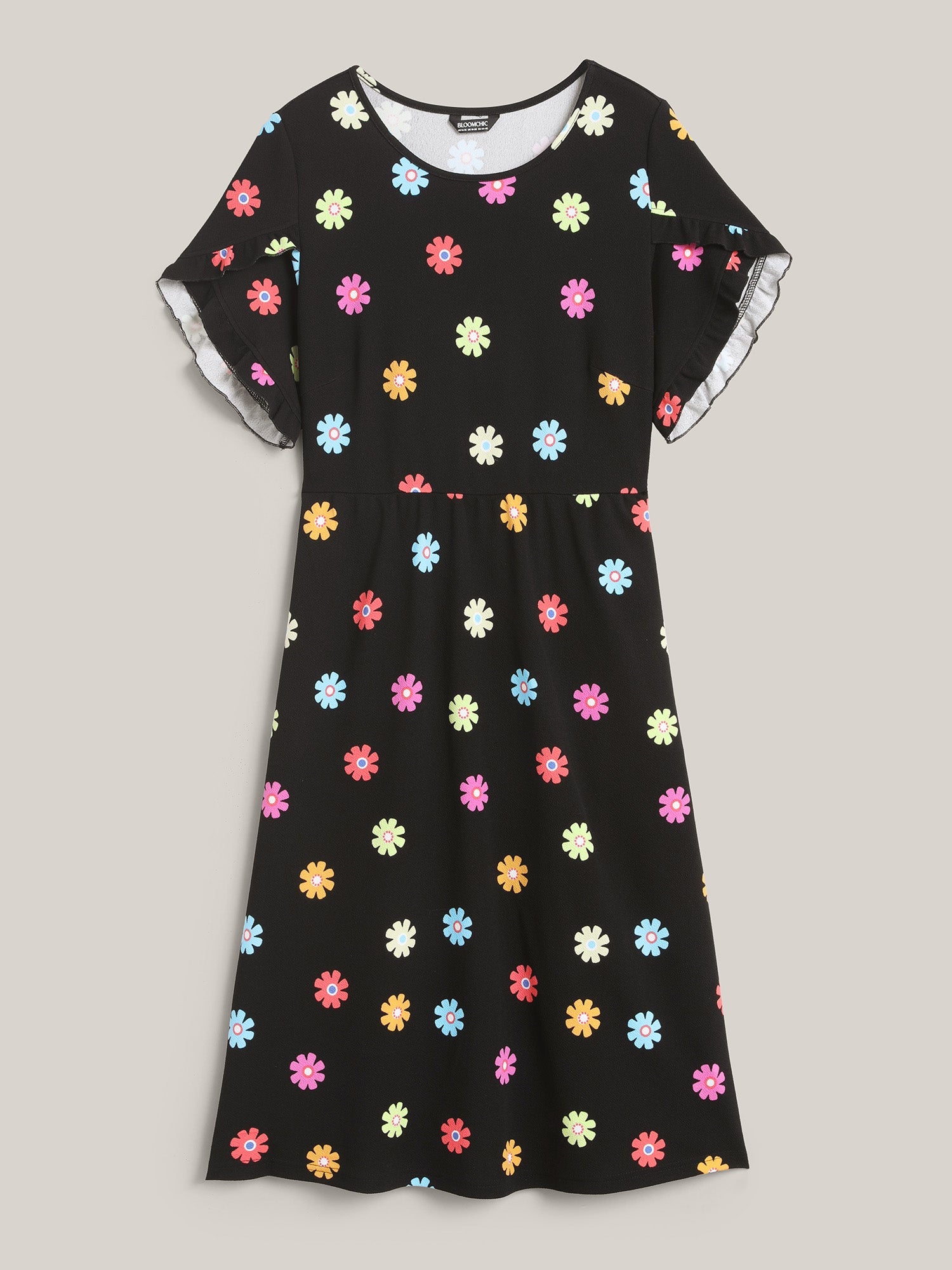 Stretchy-Waist Floral Print Pockets Midi Dress