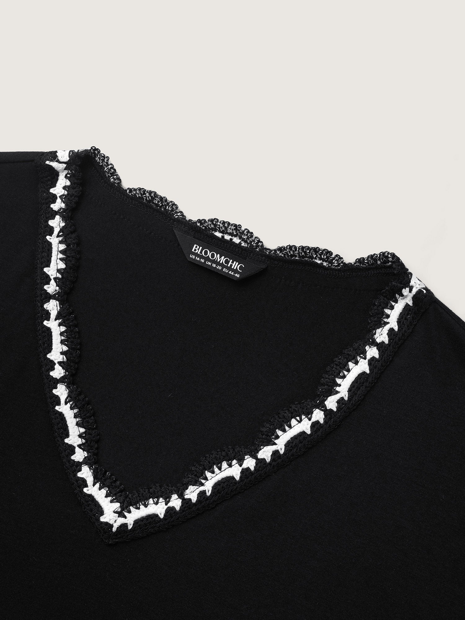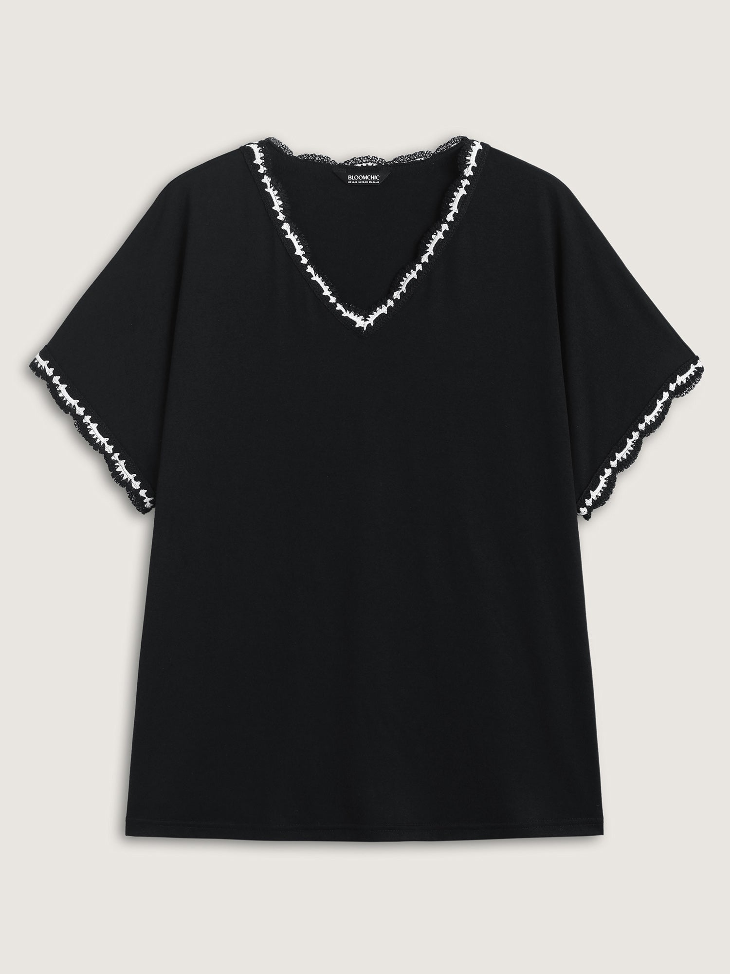 Supersoft Stretchy Scalloped Neck Solid T-Shirt