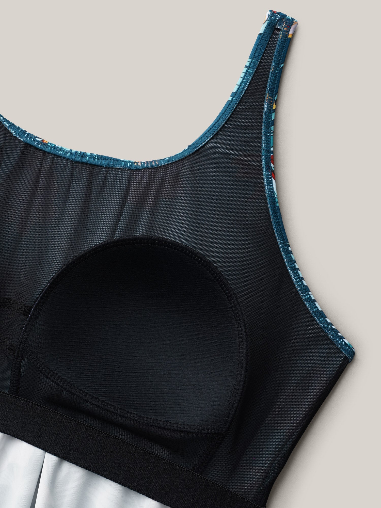 Tropical Flower Print Pockets One-Piece Swimsuit